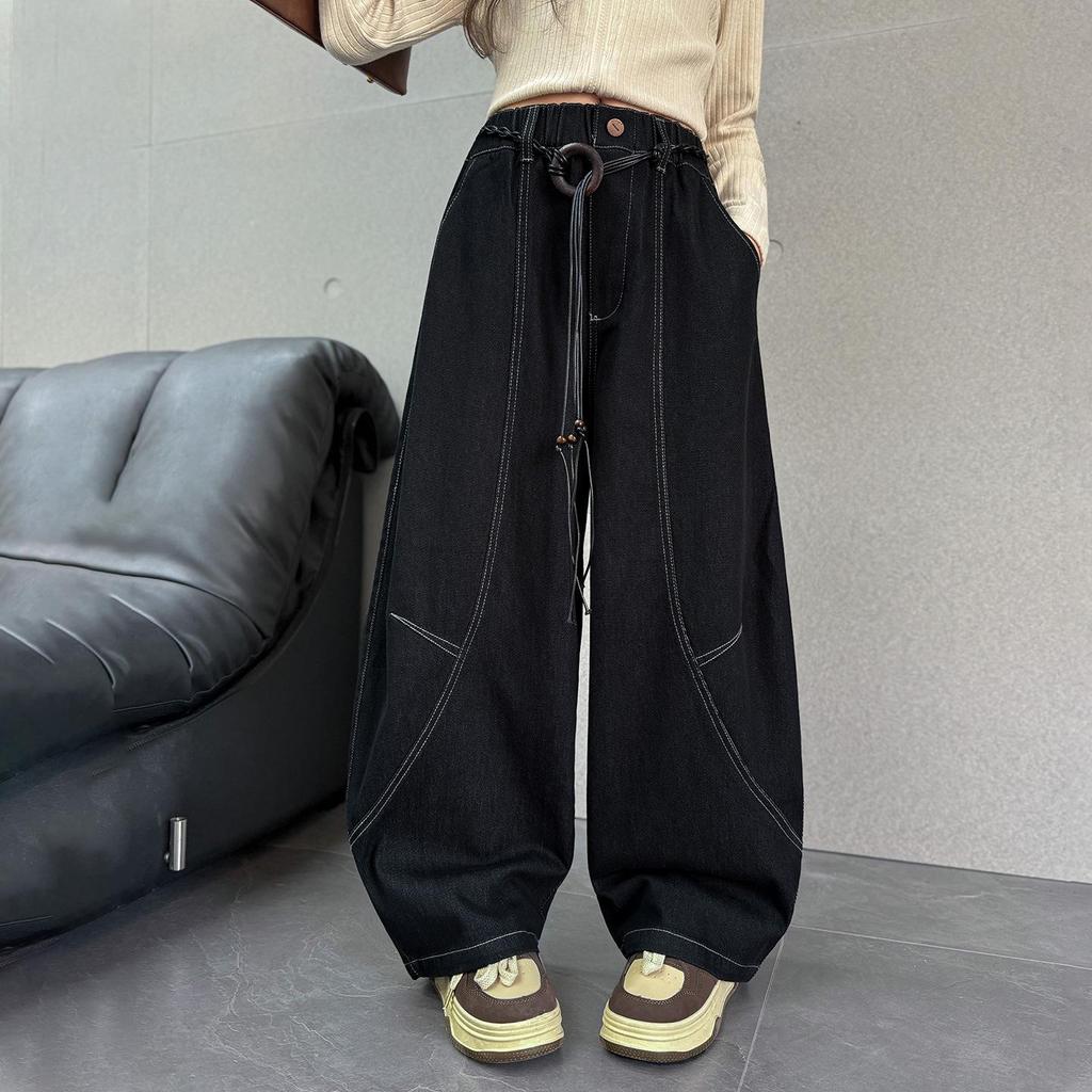 2025 Autumn Girls' Wide-Leg Scimitar Jeans - Korean Style for Middle and Big Kids