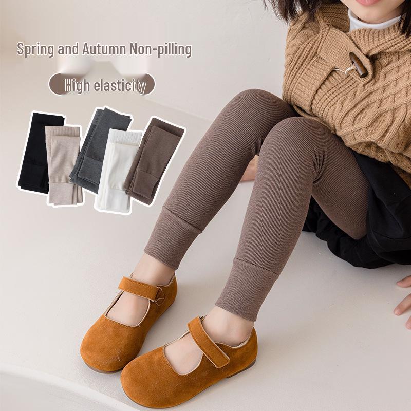 Korean Style Girls' Fleece-Lined Leggings: Thick, Warm Nine-Point Pants with Brushed Cotton Pantyhose for Autumn and Winter