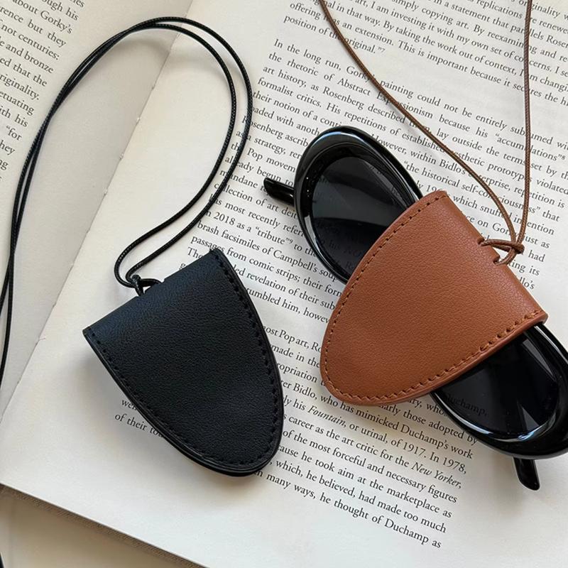 Portable Hanging Neck Glasses Storage Bag Pendant PU Leather Travel Sunglasses Magnetic Bag Accessories for Men and Women