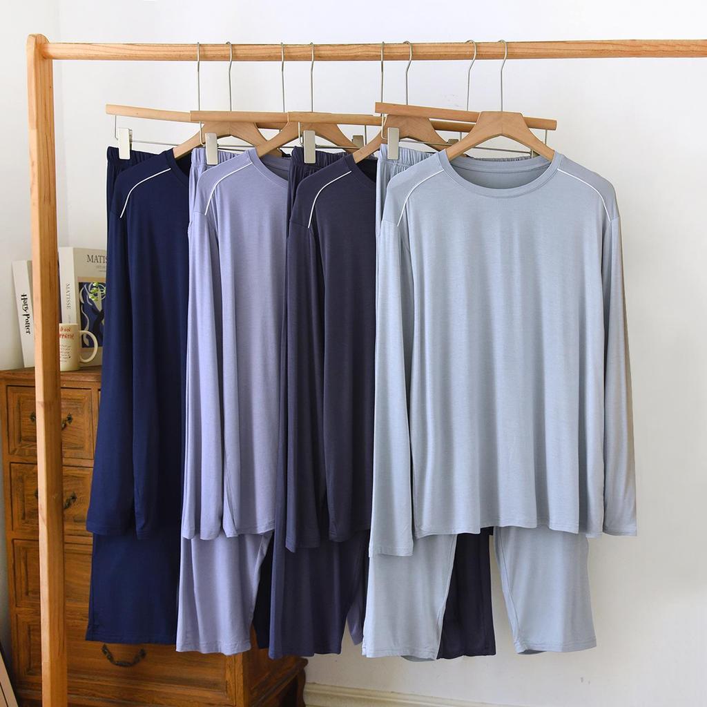 Experience ultimate comfort with this men's casual pajama set, crafted from soft and breathable modal material. Ideal for both spring and autumn, this set includes a long-sleeve top and pants with convenient pockets. Designed for a loose fit, it offers ease of movement and is available in plus sizes for additional comfort. Perfect for lounging at home, this pajama set combines style and practicality.