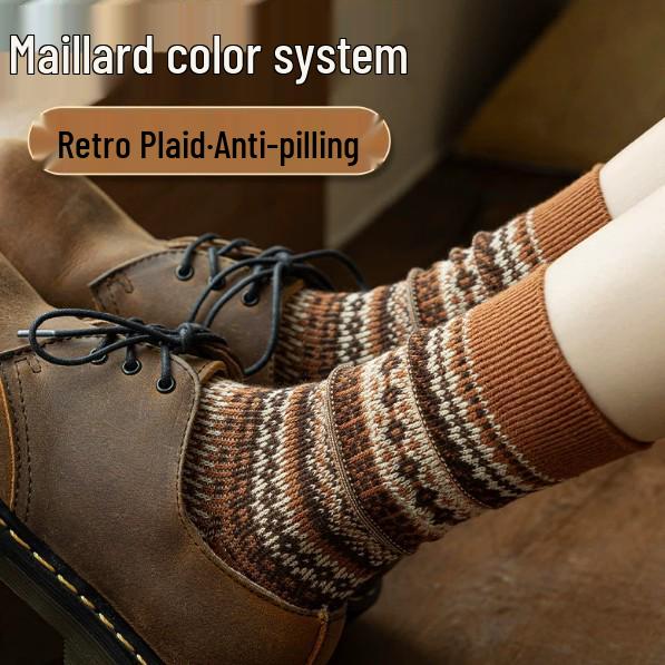 Meilaide Women's Retro Double-Needle Mid-Calf Striped Cotton Socks, Ethnic Style, Winter-Ready