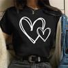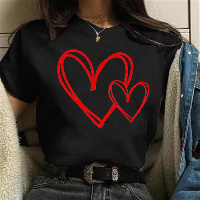 Cute Women's Summer Tee with Love Heart Pattern - Fashion Short Sleeve Top