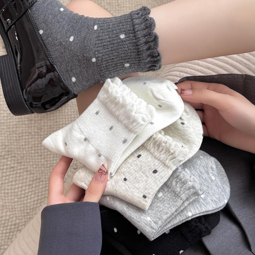 Autumn Japanese Ballet Style Polka Dot Lace Mid-Calf Socks for Women (25 Pack)