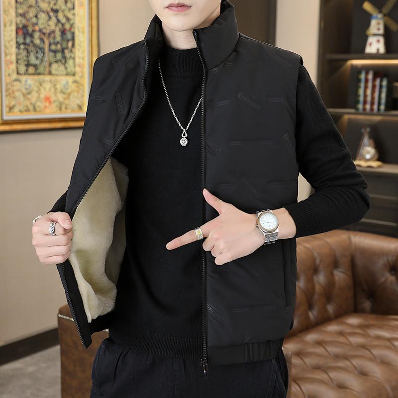 Lamb Velvet Men's Vest, Autumn and Winter Trendy Down Cotton Vest Warm and Velvet