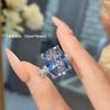 Simulation Paraiba Square Ring Women'S Premium Full Diamond Ice Flower Cut Fat Rectangular Tanzanite Blue Diamond Ring