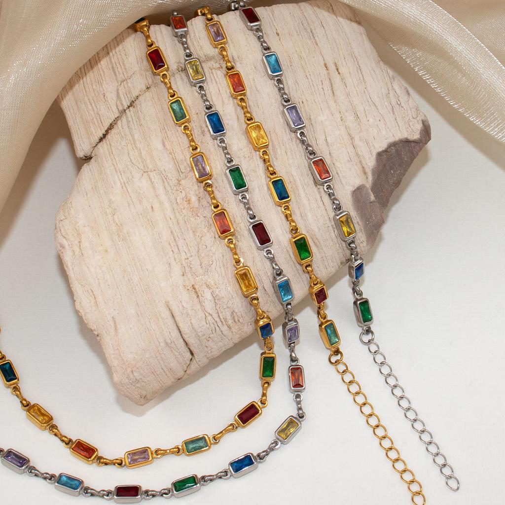Retro Personalized Clavicle Chain Square Diamond Crystal Necklace, Dopamine Necklace Jewelry