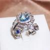 Blue Zircon Feather Ring Women'S Light Luxury Temperament Aquamarine Elegant Opening Adjustable Ring