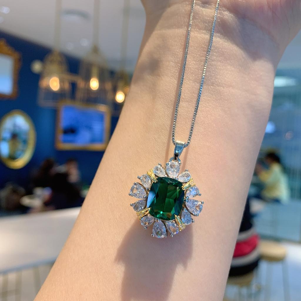 Jewelry Pendant, Simulated Emerald, Diamond-Encrusted Women'S Pendant, Main Stone 10 * 12.