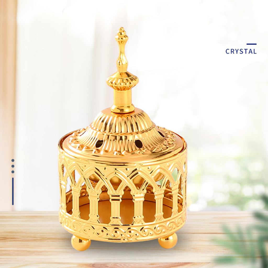 from metal iron with a vintage oriental design, this incense burner doubles as a bakhoor burner and candle holder, blending functionality with decorative elegance for home or office.