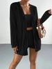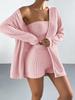 Elevate your loungewear collection with this stylish women's three-piece pajama set, featuring a long sleeve cardigan, bandeau, and shorts. Crafted from soft polyester, the set boasts a brushed ribbed texture enhanced by sanded groove strips, ensuring ultimate comfort and a chic look. Perfectly versatile, this set can be worn indoors for cozy relaxation or out for a casual yet fashionable ensemble.