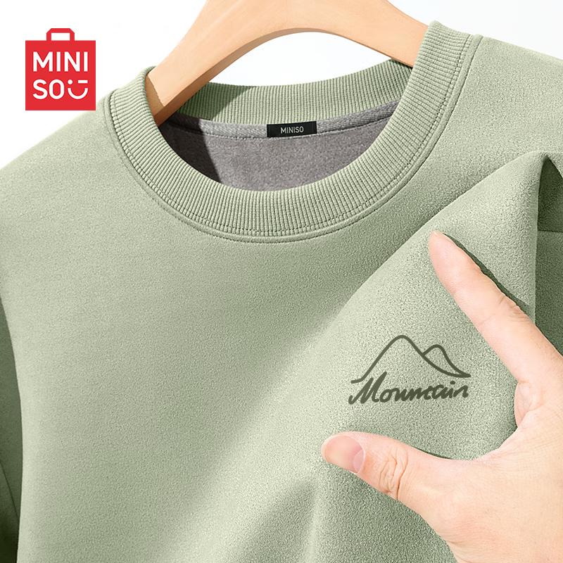 MINISO Men's Suede-Like Fleece-Lined Crew Neck Pullover