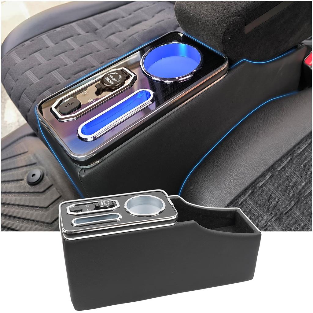 [RGB Lighting & Easy Operation] The Delica Mini console box features built-in RGB LED lighting in the cup holders and smartphone holder. Seven colors and brightness can be switched with a single touch. Furthermore, when you open the armrest cover, a blue light automatically comes on, providing visibility and convenience even when driving at night or sleeping in the car.