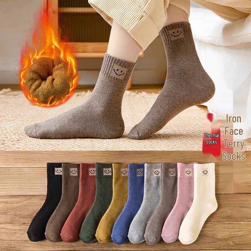 Women's Thickened Terry Socks - Anti-pilling, Non-slip, Mid-calf, Warm Autumn/Winter Floor Socks