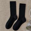 Women's Vertical Stripe Wool Socks: Thick, Warm, Simple, Solid Color, Versatile Japanese College Style, Mid-Calf Pile Socks for Autumn and Winter