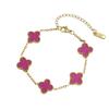 Gold-Plated Stainless Steel Four-Leaf Clover Bracelet - 13mm, Fashionable Color-Retention Jewelry