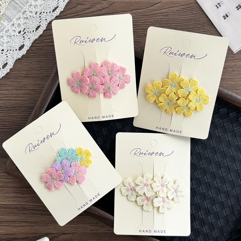Pink Cherry Blossom Embroidered Hair Clip for Girls