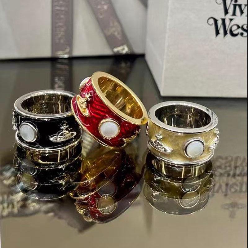 Seiko Empress Dowager White Pearl Punk Couple Ring with Vintage Enamel Glaze