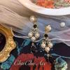 Black Stud Mandala Baroque Chic Pearl Teardrop Diamond Earrings