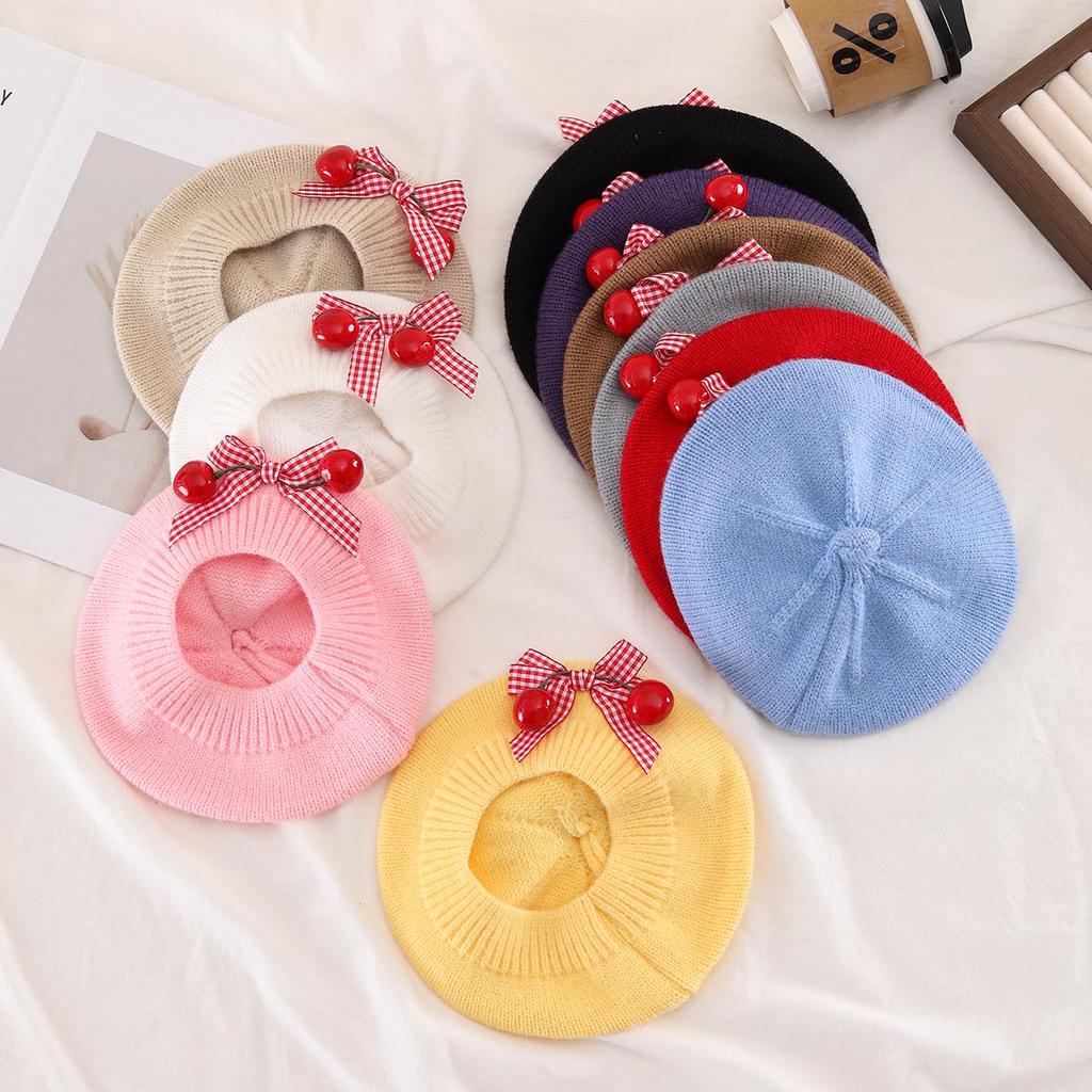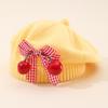 Charming Woolen Beret with Bow & Cherry for Kids - Autumn & Winter Solid Color Hat