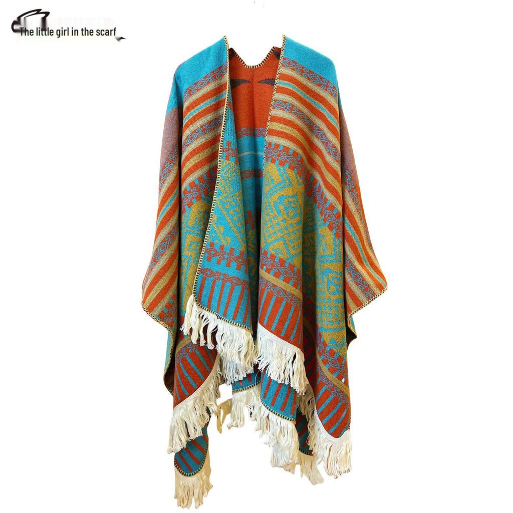 Ethnic Style Knitted Shawl Pullover Cape - Women's Warm Travel Cloak