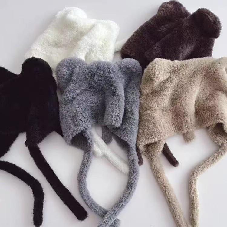 Children's Cute Kitten Ear Muffs Hat - Plush, Knitted, Windproof, and Warm Solid Color Headwear