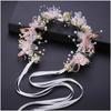 Mori Style Fairy Flower Crown Headband with Ribbons - Flower Girl Princess Birthday Accessory