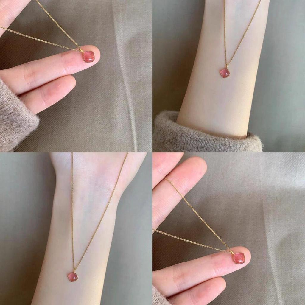 Pink Square Bean Necklace for Women - High-End, Everyday Versatile Choker, Skin-Brightening, Perfect Gift for Girlfriend.