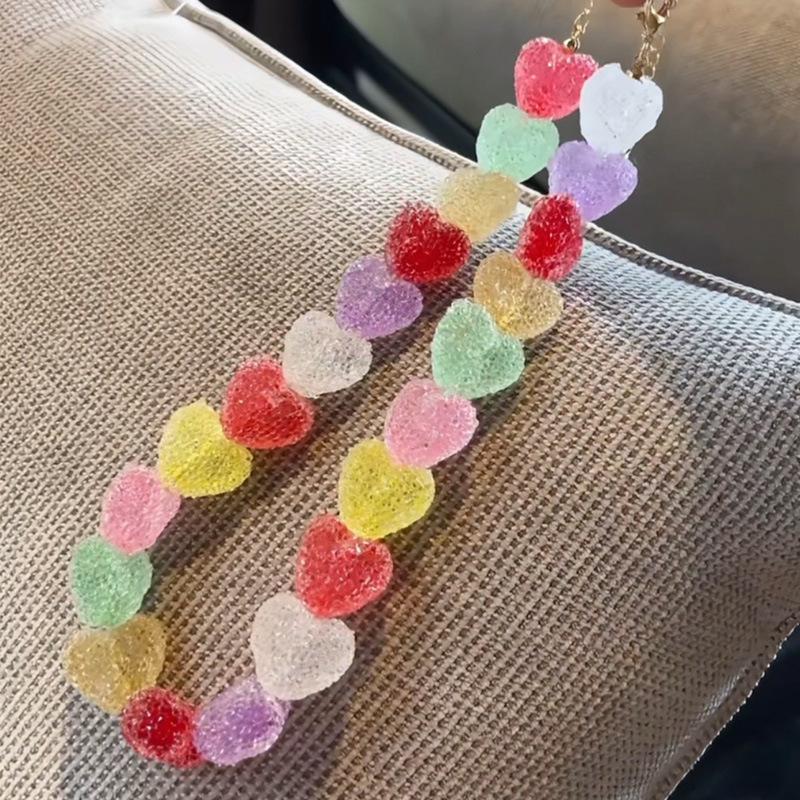 Cute Candy Color Heart Resin Necklace: Sweet Dopamine Design Choker
