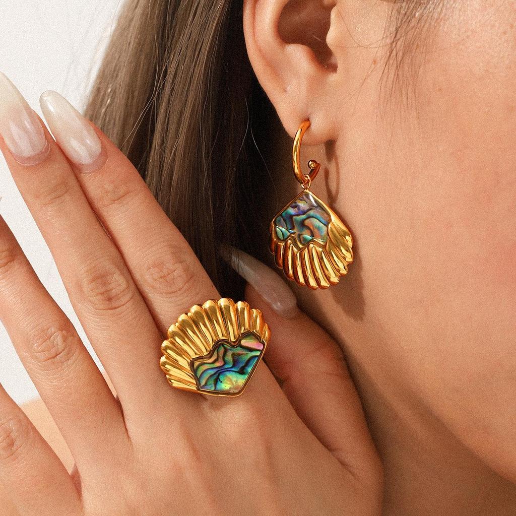 High-End Ocean Style Stainless Steel Ring & Earrings Set for Women - Non-Fading, Fashionable Jewelry
