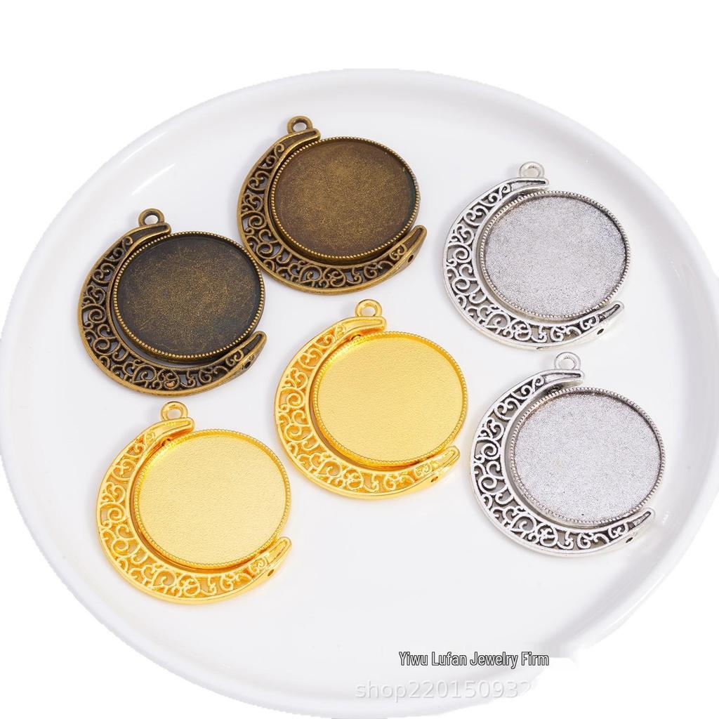 Rotatable 20mm Double-Sided Alloy Moon Photo Pendant Base