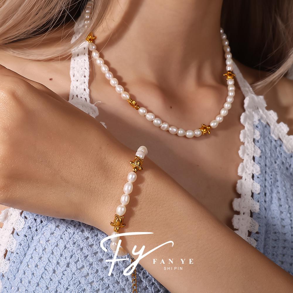 High-End Freshwater Pearl Necklace with Ocean-Inspired Seahorse and Turtle Design In Women's Titanium Steel