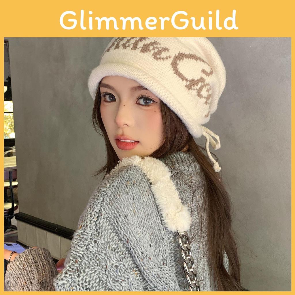 Printing Pattern Letter Beanie Knitted Cap For Women Windproof Breathable Warm