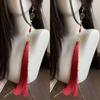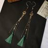 Mountain Ghost Flower Copper Coin Earrings with Tassels - Unisex Hanfu Style Ear Cuffs