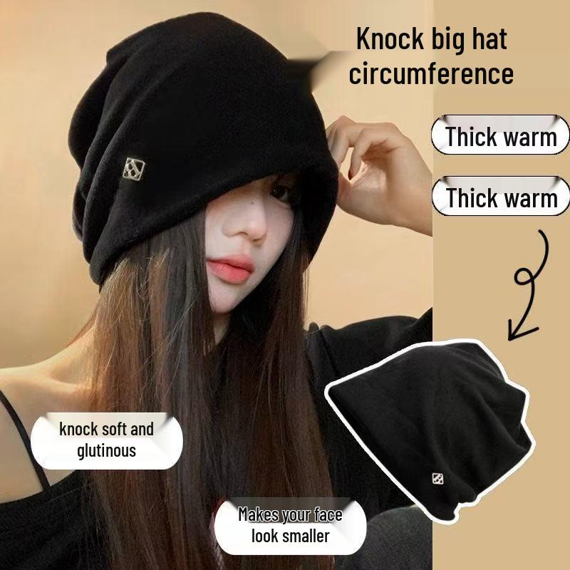 Versatile Women's Knit Beanie: Warm, Loose, Metal Label, Slimming Effect, Fits Large Head Circumference