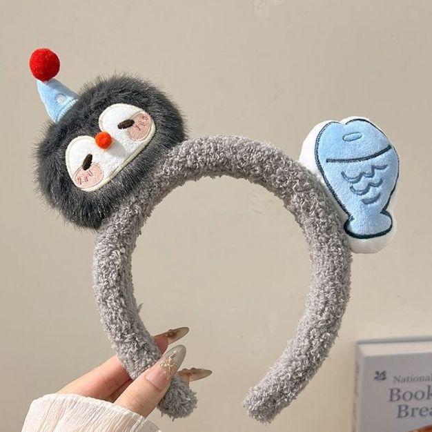 Creative Penguin Fish Plush Headband: Cute & Adorable Cartoon Hair Accessory for Girls – Perfect for Photos, Face Wash, or Fun!