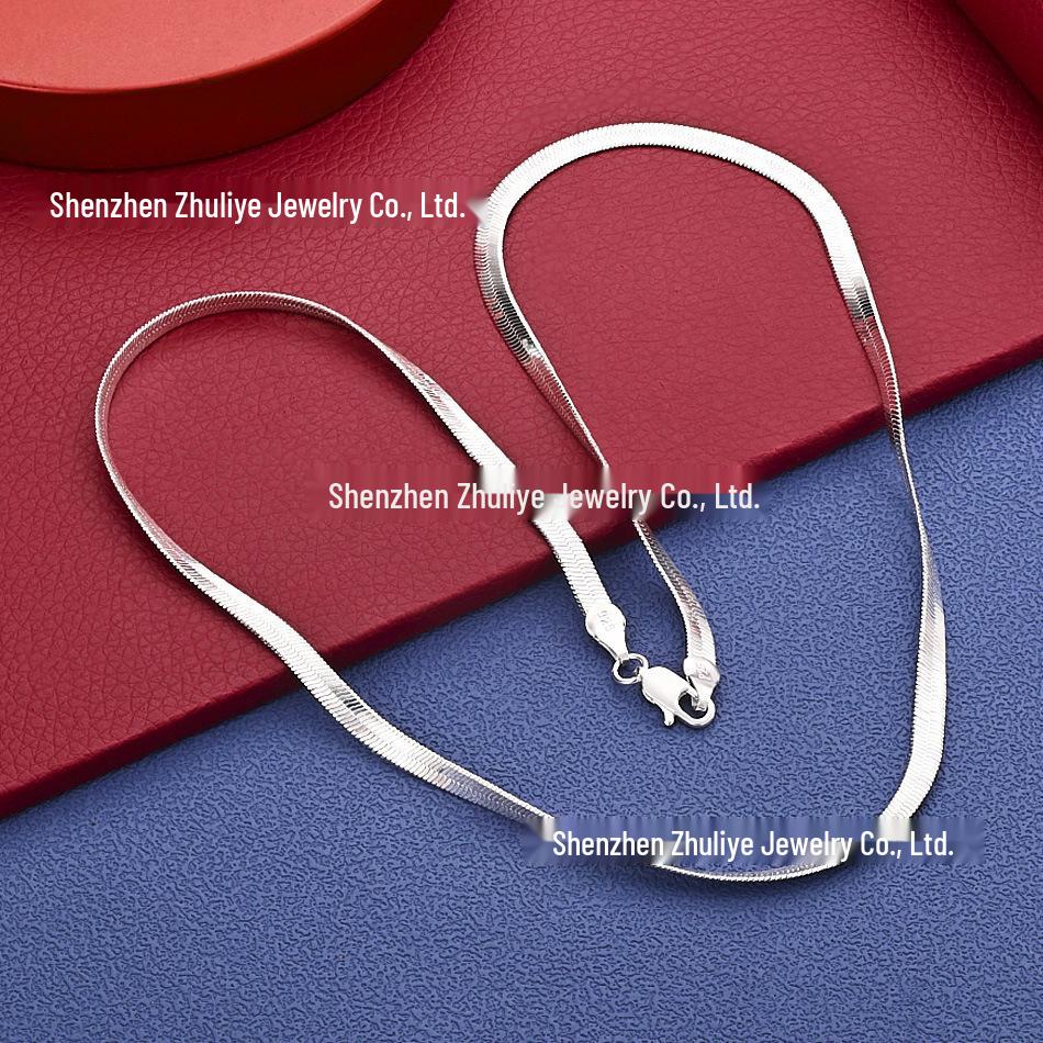 Silver-Plated 4MM Blade Chain Necklace, Gold-Plated Flat Snake Bone Chain, Unisex European and American Fashion Jewelry.