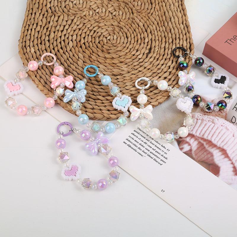 Candy Color Butterfly Beaded Phone Lanyard, Keychain & Heart Pendant with Building Blocks