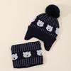 Cartoon Dog Plush Knit Hat & Scarf Set - Fleece-Lined with Warm Ear Protection and Pom Pom