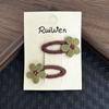 Children's Korean Style Dark Color Embroidered Flower Hair Clips, Autumn/Winter Collection