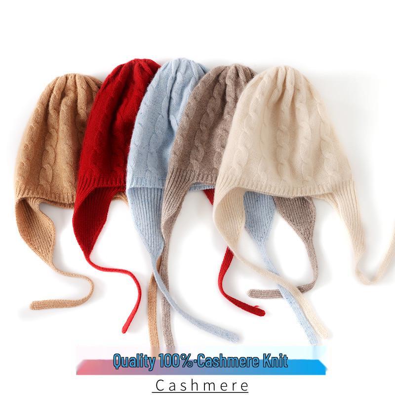 Women's Knitted Cashmere Hat with Ear Protection - Cute, Warm, Thick Winter Head Wrap