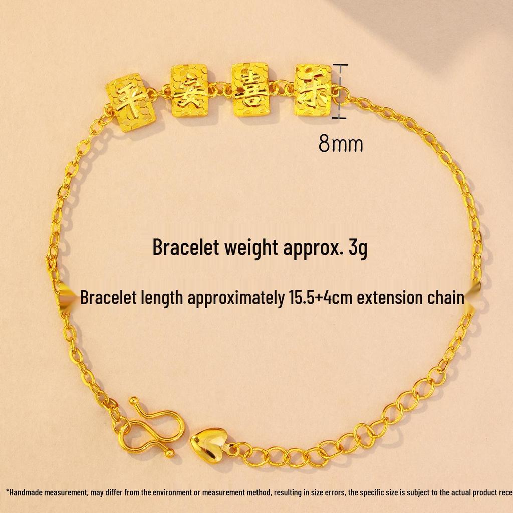 Gold Shop Style Sand Gold Bling Peace & Joy Crushed Ice Cube Bracelet for Women - Light Luxury High-End Beaded Jewelry