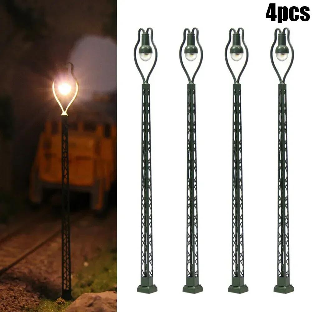 LED Landscape Lighting Pack Four Piece Set of Lattice Mast Lights Ideal for N Gauge Railway Layouts with Safety Features