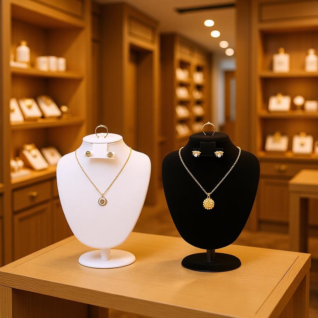 Velvet Necklace Display Stand Set - Jewelry Mannequin for Pendants