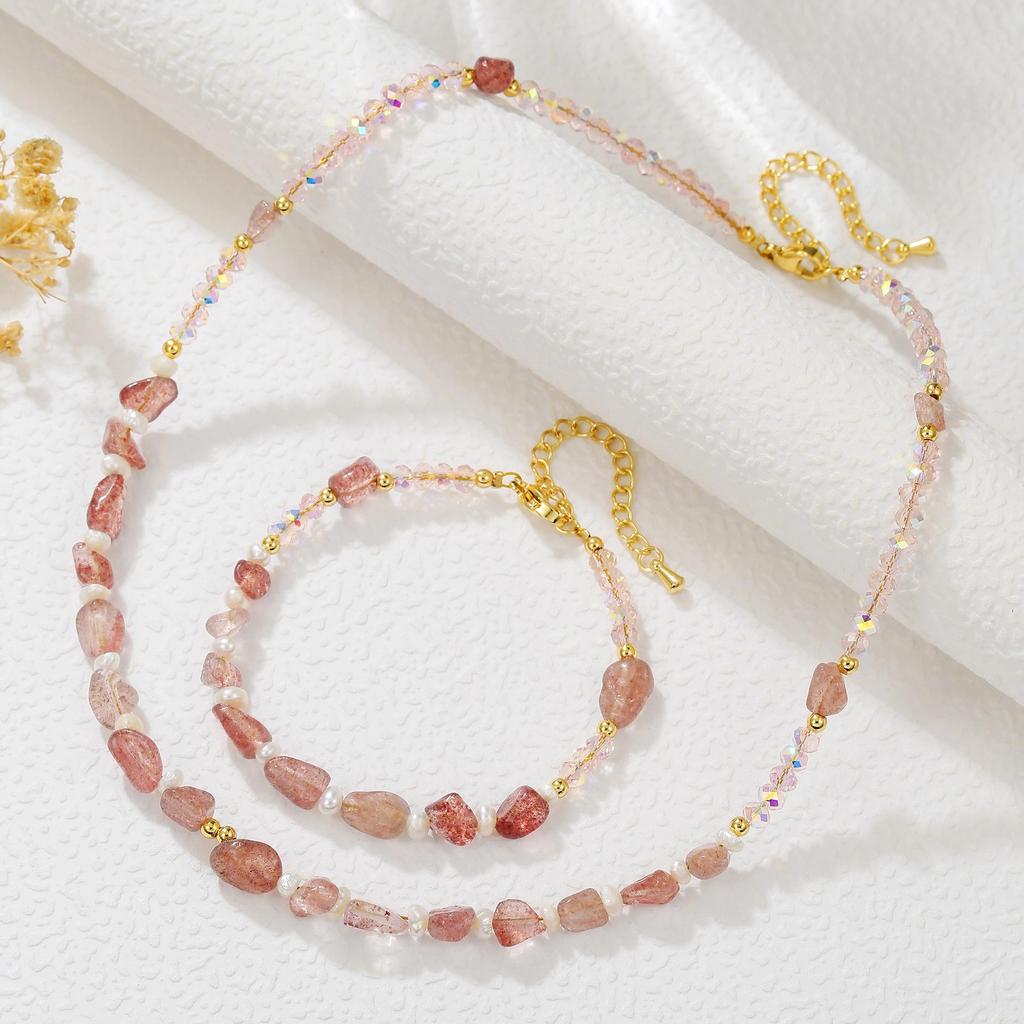 Strawberry Quartz & Rose Quartz Freshwater Pearl Jewelry Set for Autumn/Winter