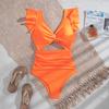 This elegant one-piece swimsuit is designed for women who appreciate style and sophistication. Crafted from high-quality polyester, it features a slimming high-waist cut that enhances your silhouette. The solid pattern adds a touch of timeless elegance, while the ruffle detailing and backless design offer a chic and playful look. Perfect for sun-soaked beach days or lounging by the pool, this swimsuit combines fashion and comfort effortlessly.