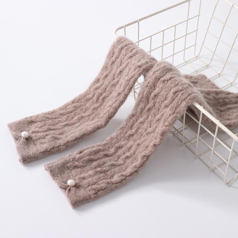 Women's Long Fingerless Cashmere Wool Gloves with Pearl Detail