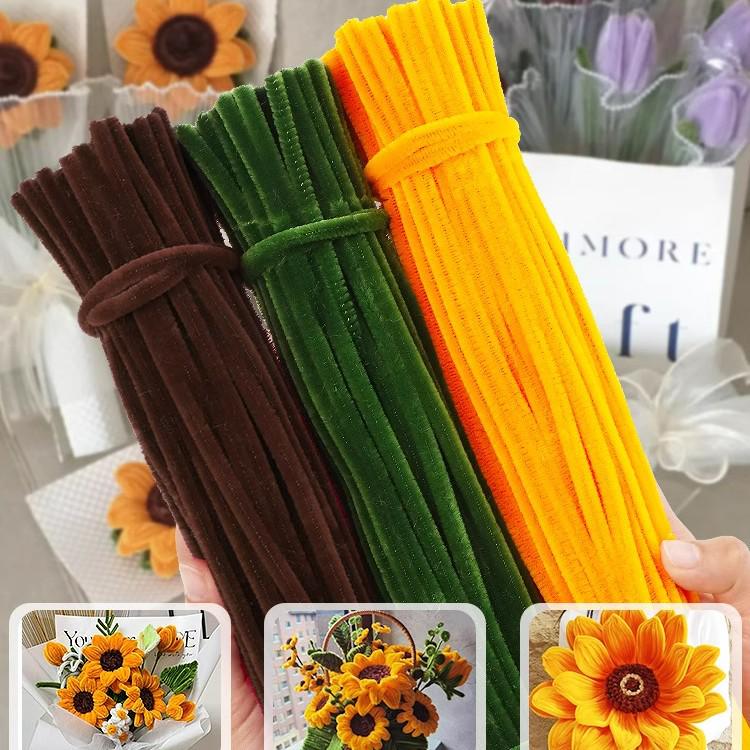 Super Dense Velvet Chenille Stems Sunflower Bouquet DIY Kit with Eco-Friendly Pipe Cleaners