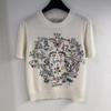 Women's Early Spring Embroidered Round Neck Short Sleeve Knitted Top