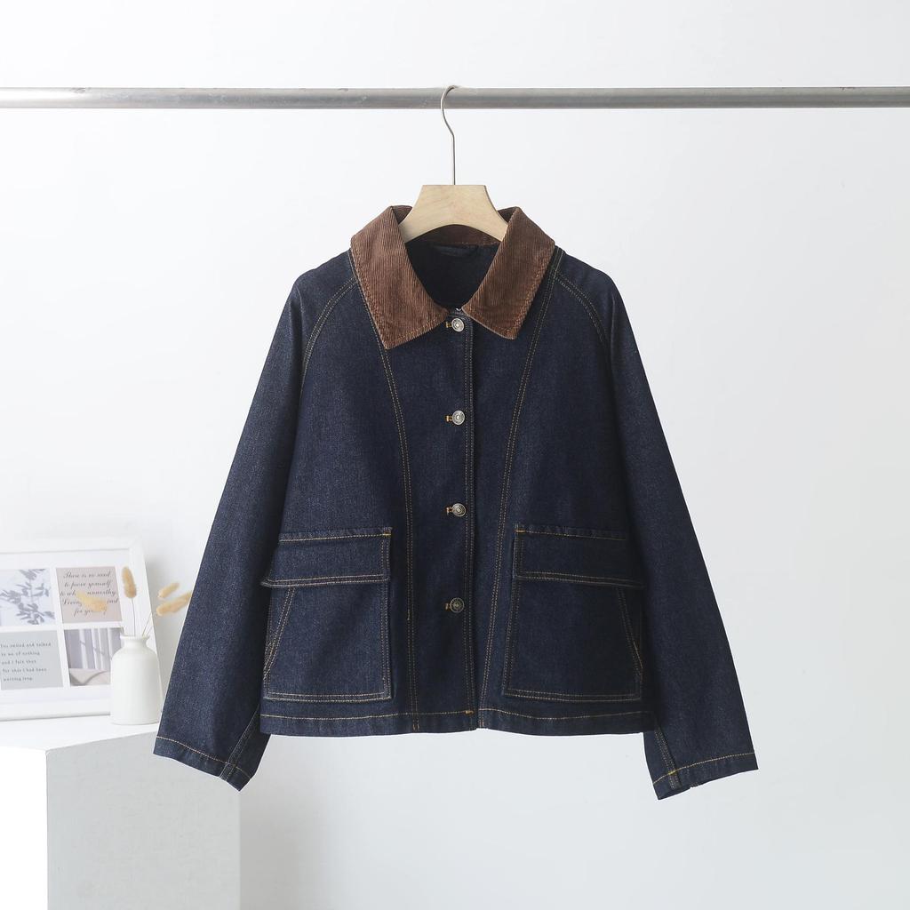2025 Autumn Cotton Stretch Barn-Style Denim Jacket: Retro Loose, Versatile, Short Outerwear Top