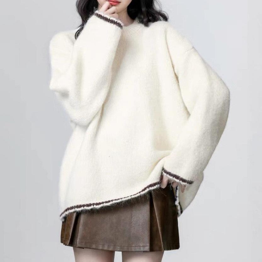 New Plus Size Colorblock Knitted Sweater: Cozy Autumn/Winter Casual Round Neck Pullover for Women